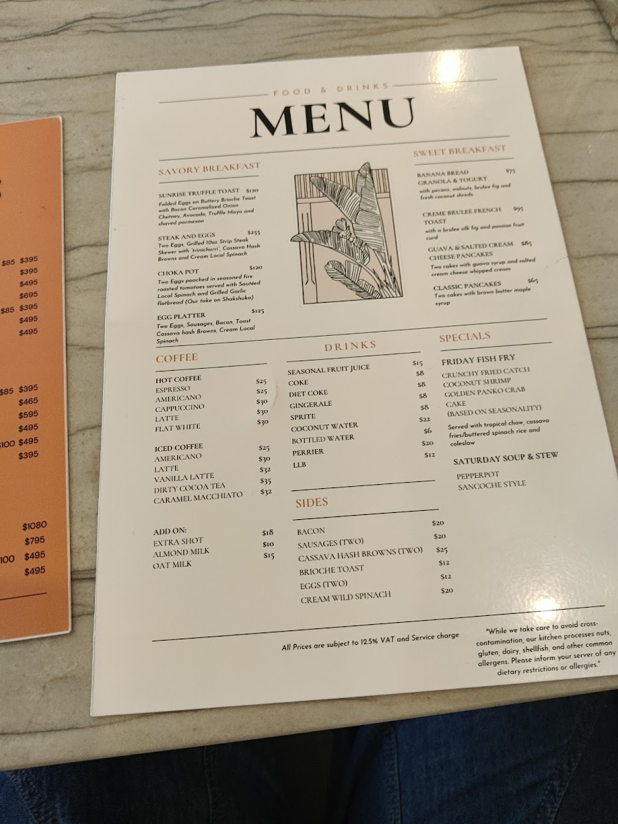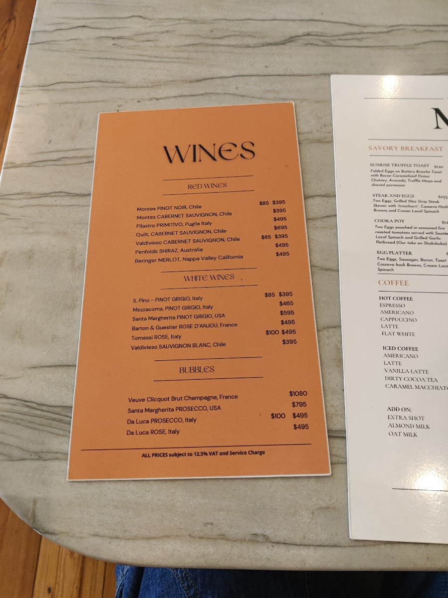 The menu offers a variety of options suited for different dining occasions, including breakfast, light meals, and casual dining. Selections include a range of food and drink categories designed to accommodate diverse preferences throughout the day.